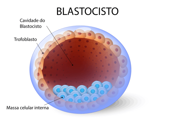 - Quinto dia: o embrião atinge o estágio de blastocisto, com cerca de 120 células e formação da blastocele.